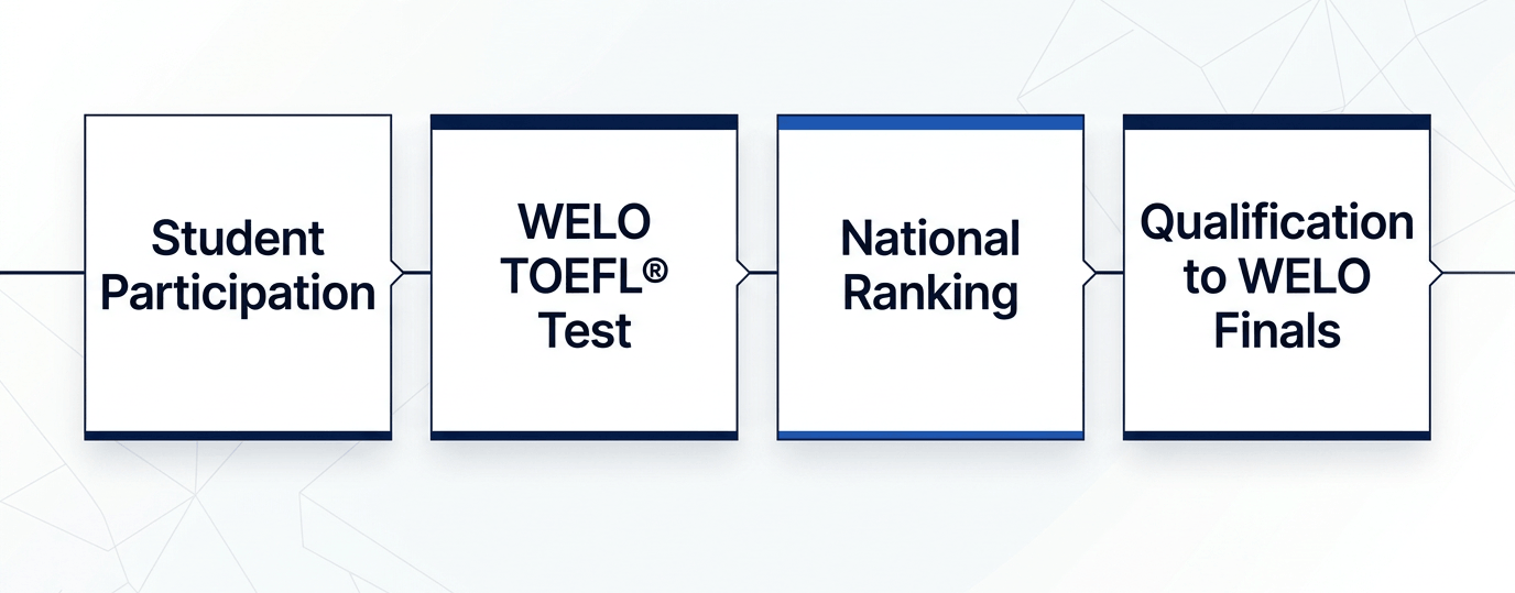 The WELO National Qualifiers are delivered through the official WELO TOEFL® test, which serves as the national ranking assessment of the competition.